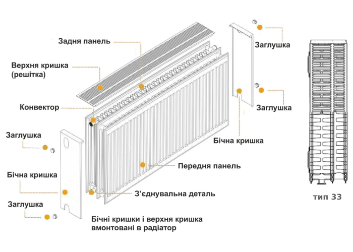 • Тип - 33 (три панелі з трьома конвекторами)