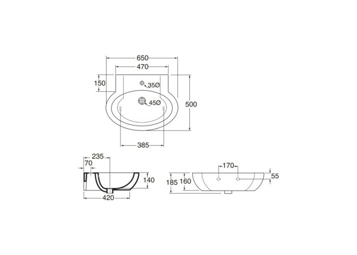 Раковина для ванної кімнати Azzurra Comoda COM65B1/S чудово виглядатиме, як з п‘єдесталом, так і без нього, підвішений до стіни за допомогою кронштейнів. Чаша виготовлена у формі довгастого овалу з отвором для переливу та отвором для зливу води з діаметром d=45 мм. Діаметр отвору для змішувача d=35 мм. Завдяки своїм формам вона легко миється, а на пристінній поверхні можна розмістити приладдя для ванни та аксесуари.