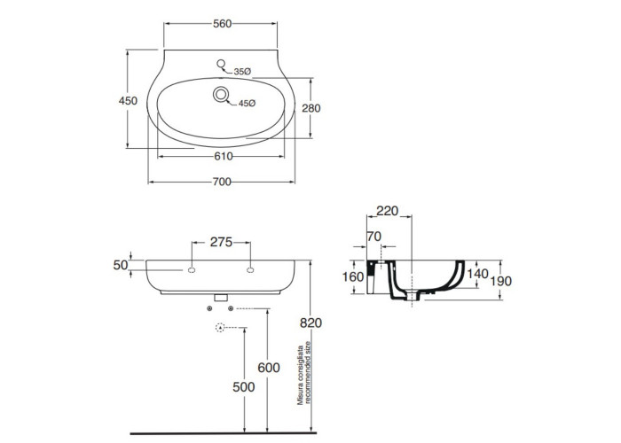 Раковина Azzurra Vera VER70B1/SOSP виконана з білої кераміки і має класичні форми, які доповнять ванну з будь-яким інтер‘єром. На раковині передбачено отвір під змішувач з діаметром d=35 мм. Діаметр зливного отвору d=45 мм. Змішувач можна встановити на стіну і таким чином додати кімнаті сучасності. Виріб обладнано отвором для переливання води і поверхнею для розміщення ванних приладь та аксесуарів.