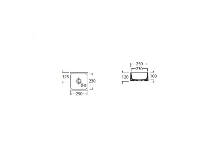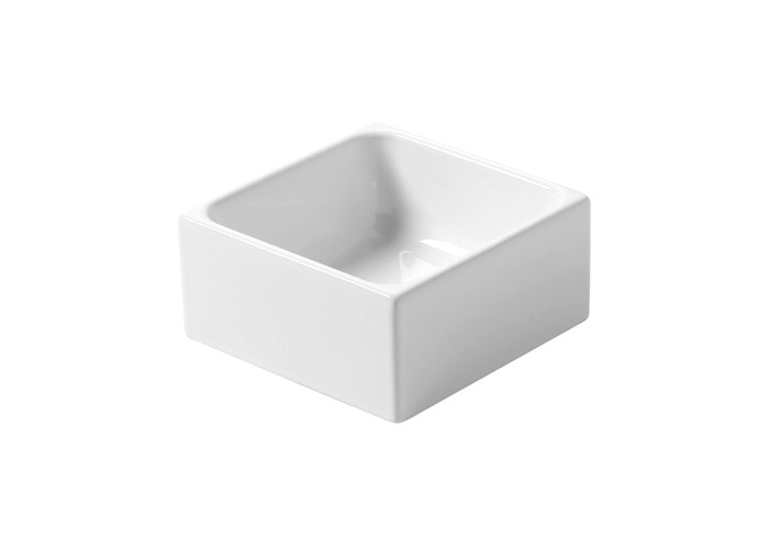 Квадратна раковина-чаша Azzurra Lavabi arredo GEO25B1 дуже витончено виглядає у ванній кімнаті в стилі арт-дизайн, класика або модерн. Вона має габарити 120х250х250 мм, тому не забере багато місця. Встановлюється на стільницю або на тумбу. Отвір для змішувача не передбачено, але його можна встановити на стіну або стільницю, віддавши перевагу високому виливу. Білосніжна раковина виконана з кераміки з глянцевою поверхнею. Її зручно мити завдяки відсутності кутів. Діаметр отвору для зливу води d=45