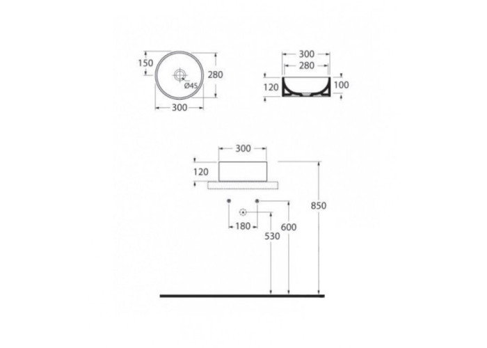 Кругла раковина-чаша Azzurra Lavabi arredo ROU30B1 дуже витончено виглядає у ванній кімнаті в стилі арт-дизайн, класика або модерн. Вона має габарити 120х300х300 мм, тому не забере багато місця. Встановлюється на стільницю або на тумбу. Отвір для змішувача не передбачено, але його можна встановити на стіну або стільницю, віддавши перевагу високому виливу. Білосніжна раковина виконана з кераміки з глянцевою поверхнею. Її зручно мити завдяки відсутності кутів. Діаметр отвору для зливу води d=45 мм
