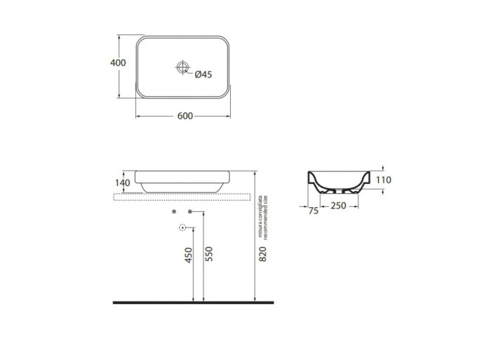 Раковина-чаша Azzurra Tulip ESO60B1 монтується урізним способом в стільницю. Вона виконана з білої кераміки і має глянсову поверхню. Відсутність кутів робить догляд швидким. У виробі не передбачені отвори для змішувача та для переливу. Змішувач можна встановити на стіні, що виглядає дуже сучасно та незвично.