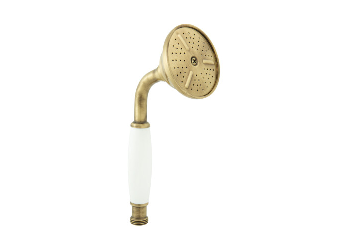 Представлена тут однорежимна кругла, ручна лійка Old America C02542 BR від Emmevi виготовлена з високоякісної латуні з покриттям бронзового кольору, має діаметр душової поверхні 7.5 см, і оснащується підведенням з зовнішньою різьбою для підключення душового шланга під діаметр 1/2″.