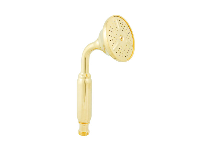 Представлена тут однорежимна кругла, ручна лійка Old America C02542TD від Emmevi виготовлена з високоякісної латуні з покриттям золотого кольору, має діаметр душової поверхні 7.5 см, і оснащується підведенням з зовнішньою різьбою для підключення душового шланга під діаметр 1/2″.