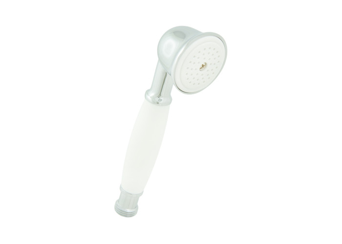Представлена тут однорежимна кругла ручна лійка Tiffany C02403 CR від Emmevi виготовлена з високоякісної латуні з покриттям хромового та білого кольорів, має діаметр душової поверхні 5.2 см, і оснащується підведенням з зовнішньою різьбою для підключення душового шланга під діаметр 1/2″.