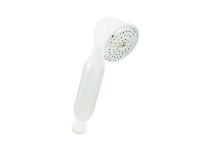 Представлена тут однорежимна кругла ручна лійка Tiffany C02528 від Emmevi виготовлена з високоякісної латуні з покриттям білого та хромового кольорів, має діаметр душової поверхні 5.2 см, і оснащується підведенням з зовнішньою різьбою для підключення душового шланга під діаметр 1/2″.