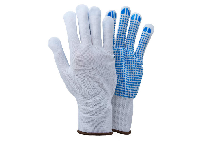 Рукавички трикотажні з крапковим ПВХ покриттям р9 білі манжети Sigma 9442421для захисту рук від механічних впливів. Характеристики: трикотажний манжет додатково фіксує рукавичку на руці, захищає від попадання пилу і бруду; ПВХ протектор на долоні забезпечує надійне зчеплення.