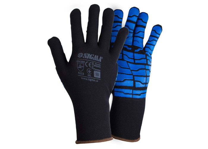 Рукавички трикотажні з латексним покриттям павутина на долоні р10 сині манжет Sigma 9445541