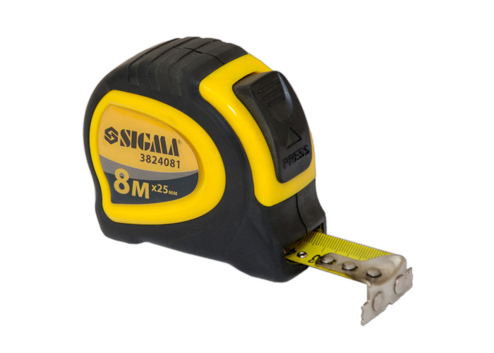 Рулетка магнітна гумована з автостопом 8 м *25 мм Sigma (3824081) призначена для вимірювальних робіт. Прогумований корпус ергономічної форми з металевим поясним затиском. Кнопка "стоп" при натисканні забезпечує вільне змотування полотна. Оснащена автостопом і намагніченим гаком, який забезпечує зручність роботи з металевими предметами. Переваги: намагнічений гак; ударостійкий, прогумований корпус; стрічка з підвищеним захистом до абразивного зносу; надійний фіксатор стрічки; затиск для кріплення рулетки до поясу; велика оцифровка шкали для зручності зчитування показань. Купити рулетку Sigma Ви можете, оформивши замовлення в нашому інтернет-магазині за допомогою простої форми, доставка здійснюється по всій Україні. Якщо у Вас виникли питання, Ви можете зателефонувати за вказаними номерами телефонів або замовити зворотний дзвінок. Фахівці нашого інтернет-магазину нададуть Вам докладні консультації та допоможуть зробити правильний вибір.