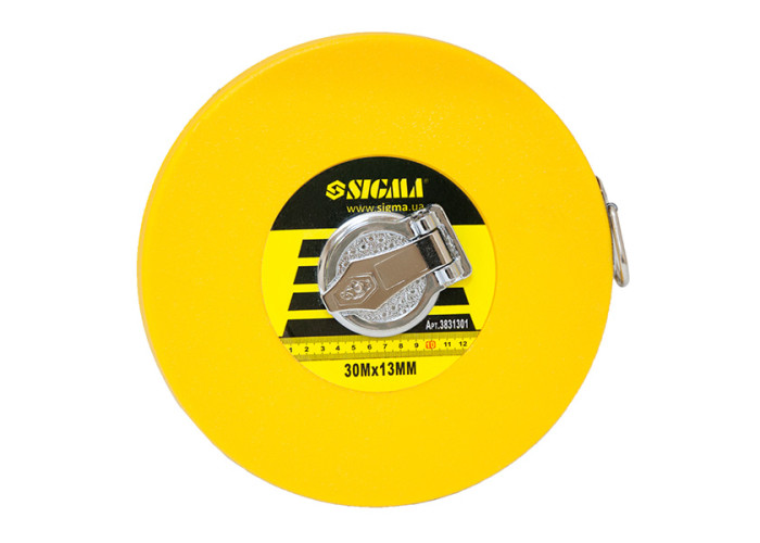 Рулетка скловолокно 30м * 13мм Sigma (3831301) - особливістю скловолоконних рулеток є можливість вимірювання великих відстаней за рахунок збільшеної міцності стрічки з низьким коефіцієнтом розтягування. Переваги: ​​корпус закритого типу з ударостійкого пластику з підсилювачем; фібергласова високоміцна стрічка, не схильна до корозії; ланцюгове кільце для фіксації початку вимірювань; відкидається важіль для змотування стрічки; ремінець для носіння на руці. Купити рулетку Sigma Ви можете, оформивши замовлення в нашому інтернет-магазині за допомогою простої форми, доставка здійснюється по всій Україні. Якщо у Вас виникли питання, Ви можете зателефонувати за вказаними номерами телефонів або замовити зворотний дзвінок. Фахівці нашого інтернет-магазину нададуть Вам докладні консультації та допоможуть зробити правильний вибір.