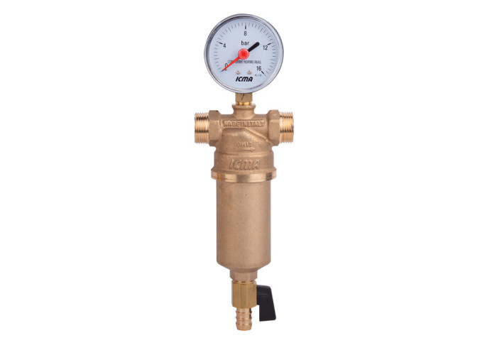 Самопромивний фільтр Icma №750 з манометром 3/4"х1/2" зовнішня/внутрішня різьба 83750AD05