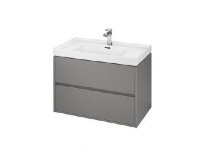 Кабінет CREA - приклад вічної, мінімалістичної форми, отриманої завдяки фронтам без ручок. Виготовлений з матової сірої вологостійкої ДСП та сірим матовим фасадом. Модель призначена для підвісного монтажу під умивальник CREA 80.