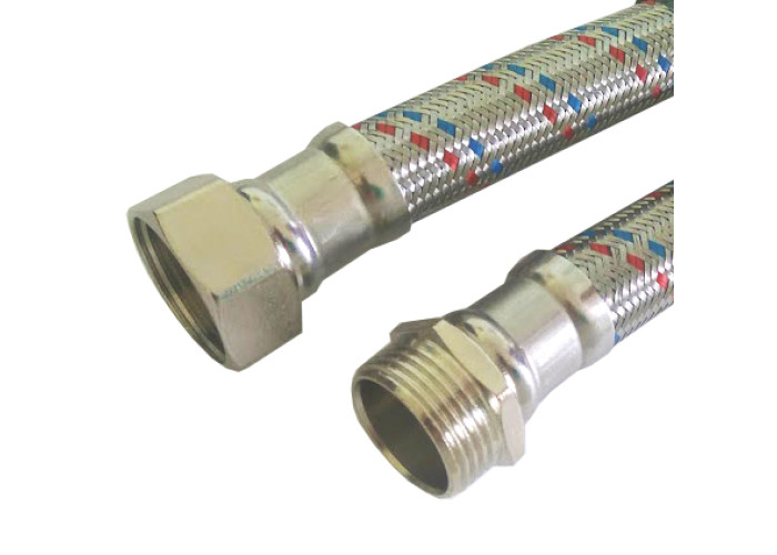 Надійні антивібраційні шланги RSk виробництва Італії. Ключова особливість і перевага – круглий обтиск обох кінцевиків, в той час як у конкурентів він квадратний (ребристий). Таке рішення дозволяє забезпечити герметичність з’єднання, відповідно, зробивши систему водопостачання приватних будинків з використанням насосних станцій значно надійнішою. Підходять для всіх брендів насосної техніки. Товщина металу на обтиску гільзи – 0,8 мм (у конкурентів це, як правило, 0,5 мм). Таким чином досягається максимальна міцність з’єднання і стійкість обтиску. Шланги RSk відрізняються також посиленою гайкою, а це теж запорука надійності та довговічності. Матеріал підведень – гума EPDM, яку дозволяється використовувати для подачі питної води. В обплетенні використовуються сині і червоні елементи – індикатор того, що шланги підходять як для гарячого, так і для холодного водопостачання. У даній продукції використовується подвійне маркування: інформативні стікери на самому підведенні та на індивідуальній для кожного шланга поліетиленовій упаковці. Поставляються в комплекті з прокладкою. В асортименті представлені прямі й кутові антивібраційні шланги довжиною 50 см, 60 см, 80 см і 1 м. Різьба – 1"ЗВ.