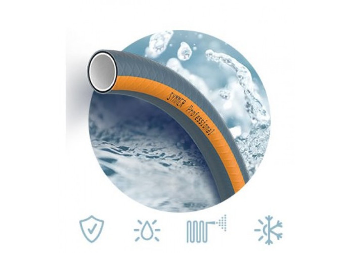Шланг для поливу PROFESSIONAL ф 1/2 "це професійний інструмент і кращий продукт для садівника. Призначений для поливу саду і городу, для догляду за різними міськими насадженнями, мийки тротуарів і спортивних майданчиків. Тришарова структура поливального шланга позбавить Вас від скручувань, пережимания і всяких деформацій при експлуатації, і при цьому дані шланги мають чудову гнучкістю. Шланг Symmer "Professional" розрахований на високий тиск води до 24 бар (критичний тиск).