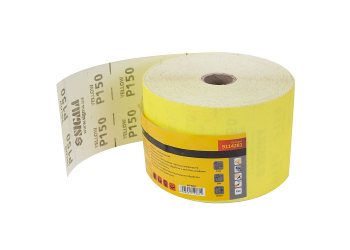 Шліфувальний папір рулон 115ммх50м P150 Sigma (9114281) призначена для ручної та машинної обробки поверхонь різних матеріалів (метал, дерево, скло, пластик) - видалення старої фарби, підготовки поверхні для грунтовки і фарбування, шліфування пофарбованих поверхонь та ін. Оптимальна для обробки тонких кромок, шліфування і вирівнювання ґрунтувальною шпаклівкою. Можливо використовувати з блоком шліфувальним ТМ Sigma. Переваги і характеристики: абразив - оксид алюмінію; тканинна основа; однорідна поверхня обробки і якість шліфування; ефективне відведення продуктів шліфування за рахунок спеціальних канавок; вологостійкість; міцність і еластичність при обробці округлих поверхонь; висока агресивність і крайова зносостійкість; скорочення споживання матеріалу на одну операцію; висока продуктивність і тривалий термін служби; широкий спектр застосування. Купити шліфувальну шкурку Sigma Ви можете, оформивши замовлення в нашому інтернет-магазині за допомогою простої форми, доставка здійснюється по всій Україні. Якщо у Вас