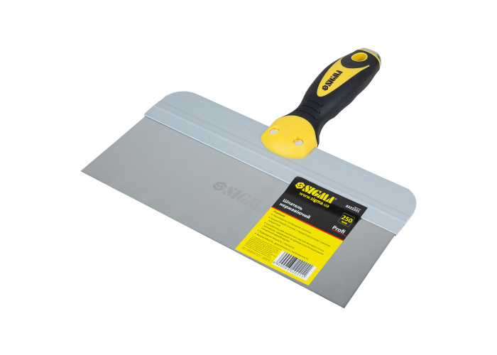 Шпатель нержавіючий Profi 250мм Sigma 8322221 застосовується для вирівнювання невеликих нерівностей при проведенні зовнішніх або внутрішніх опоряджувальних робіт. В основному застосовується для шпаклівки або штукатурки стін і стель. Переваги: нержавіюче поліроване полотно; ударостійкий пластик з термопластичних гумовим покриттям; ультрасучасний екологічно чистий матеріал класу полімерів, одержаний за допомогою безвідходних технологій виробництва; підвищена міцність і гнучкість; зносостійкість, довговічність і економічність.