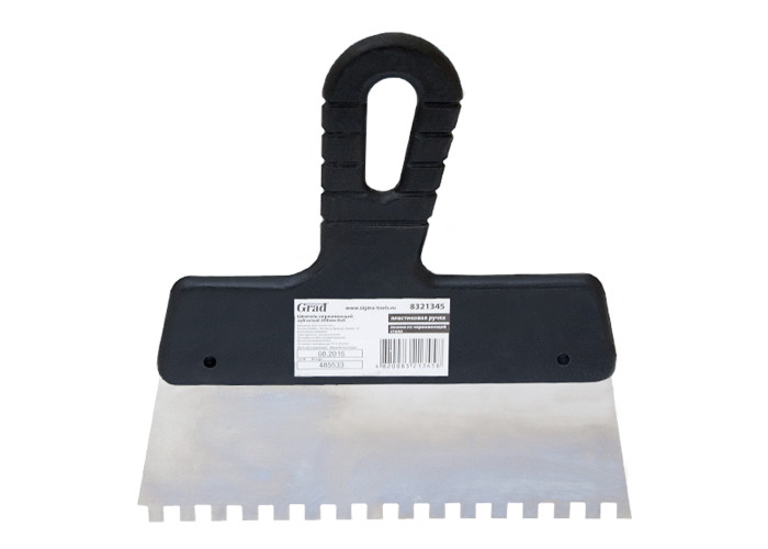 Шпатель зубчастий (нержавіючий) 200 мм 6х6 Grad (8321345) з лезом з нержавіючої сталі. Використовується в роботі з облицювальними матеріалами: кахлем, декоративним каменем і іншими. Купити шпатель Grad Ви можете, оформивши замовлення в нашому інтернет-магазині за допомогою простої форми, доставка здійснюється по всій Україні. Якщо у Вас виникли питання, Ви можете зателефонувати за вказаними номерами телефонів або замовити зворотний дзвінок. Фахівці нашого інтернет-магазину нададуть Вам докладні консультації та допоможуть зробити правильний вибір.