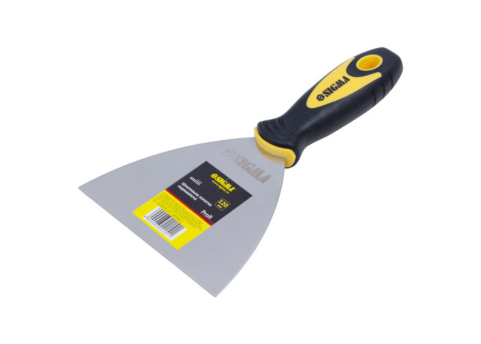 Шпательна лопатка нержавіюча Profi 120мм Sigma 8322151 призначена для виконання штукатурно-оздоблювальних робіт: нанесення, вирівнювання, згладжування різноманітних будівельних розчинів на площині, а також для демонтажу шпалер, фарби і аналогічних матеріалів. Переваги: нержавіюче поліроване полотно; ударостійкий пластик з термопластичних гумовим покриттям; ультрасучасний екологічно чистий матеріал класу полімерів, одержаний за допомогою безвідходних технологій виробництва; підвищена міцність і гнучкість; зносостійкість, довговічність і економічність.