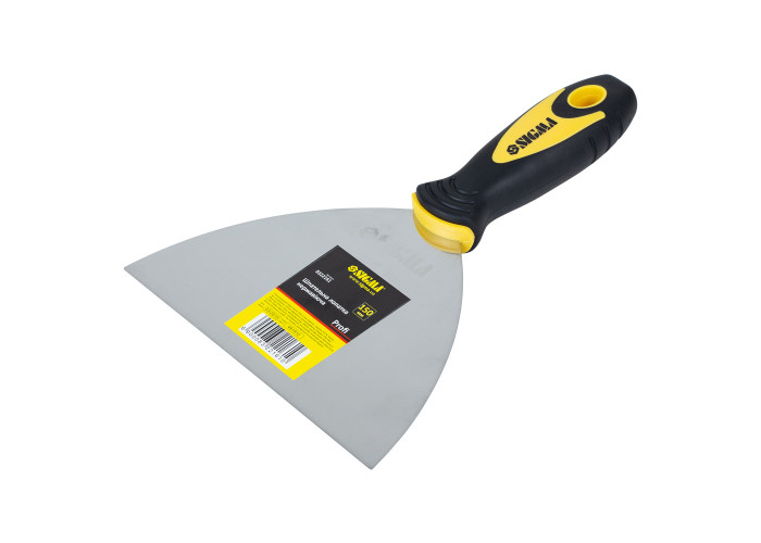 Шпательна лопатка нержавіюча Profi 120мм Sigma 8322151 призначена для виконання штукатурно-оздоблювальних робіт: нанесення, вирівнювання, згладжування різноманітних будівельних розчинів на площині, а також для демонтажу шпалер, фарби і аналогічних матеріалів. Переваги: нержавіюче поліроване полотно; ударостійкий пластик з термопластичних гумовим покриттям; ультрасучасний екологічно чистий матеріал класу полімерів, одержаний за допомогою безвідходних технологій виробництва; підвищена міцність і гнучкість; зносостійкість, довговічність і економічність.