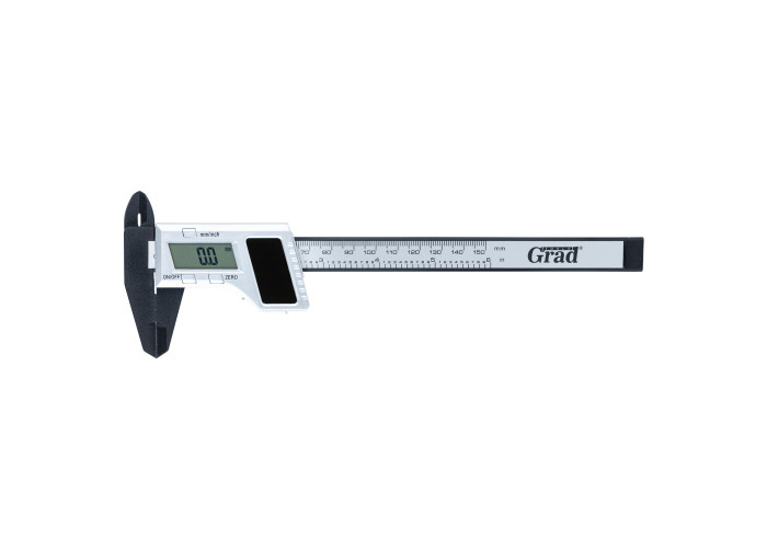 Штангенциркуль цифровий на сонячній батареї 150мм точність 0.02мм Grad (3923215) - це універсальний вимірювальний прилад для визначення лінійних розмірів деталей з установленою точністю. З його допомогою можна проводити вимірювання зовнішніх і внутрішніх розмірів деталей, а також глибини отворів за умови наявності висувної штанги. Цифровий дисплей спрощує роботу для новачків, тому що відпадає необхідність у вивченні і освоєнні навичок застосування механічного штангенциркуля. Електронний тип штангенциркуля, як правило, має компактні розміри, що позначається на його вазі. При роботі в важкодоступних місцях не виникатиме ніякого дискомфорту.