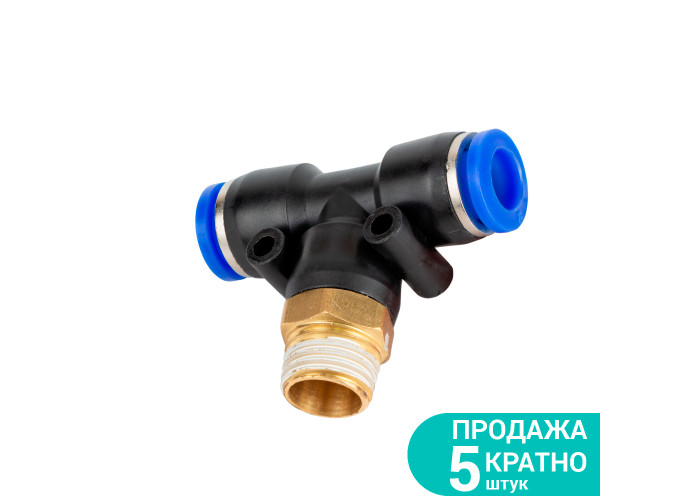 Штуцер цанговий (T-подібний) Ø6*6*6мм МТ ½" Sigma (7027351). З'єднання цангові призначені для з'єднання" різьблення-шланг "або" шланг-шланг "в різних варіантах і конфігураціях - по діаметру різних пневматичних шлангів (PU, PE, PA ), загвинчування, формі (прямі фітинги, куточки, трійники, розгалужувачі, перехідники тощо). з'єднання цангові використовують простий і надійний принцип швидкого з'єднання (цангового затиску) з гнучкою трубкою: для того, щоб зафіксувати трубку в фітингу, її потрібно просто вставити в нього з невеликим зусиллям. від'єднання е трубки проводиться теж максимально просто, шляхом натискання на спеціальну звільняє кнопку-кільце і витягування трубки. Особливості: корпус з полібутілентерефталата; цанга з нержавіючої сталі; кільце ущільнювача з нітриловою гумою;питтєва фіксація і роз'єднання; забезпечення повного потоку стисненого повітря; автоматичне ущільнення в частини входу пневматичної трубки; конічна різьблення з самоущільнююче напилення; металева частина з різьбленням з латуні; висока