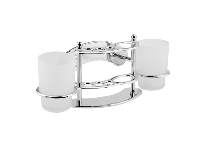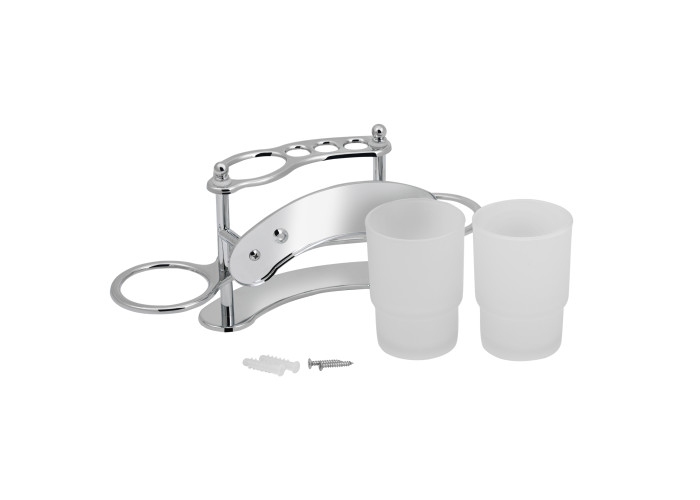 Тримач Lidz (CRM) 114.08.11 складається з двох матових склянок, тримача трьох зубних щіток та однієї зубної пасти. Тримач - двох‘ярусний, тому зубні щітки та паста будуть зафіксовані. Хромоване покриття запобіжить утворенню корозії та бруду.