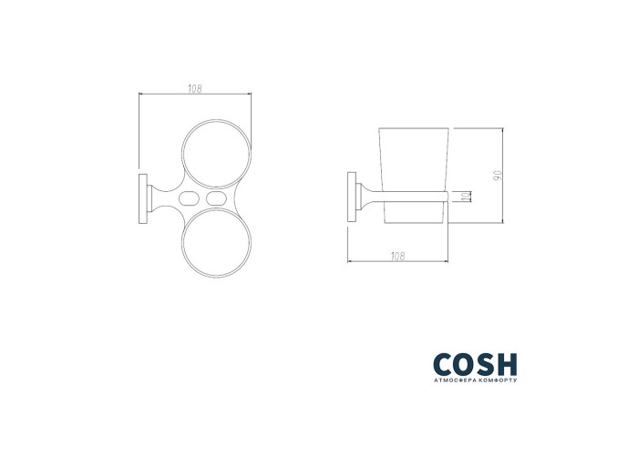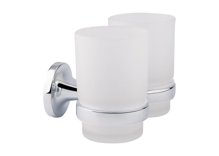 Подвійна склянка Cosh (CRM) S-80-914 виконана з матового скла з металевим тримачем, який кріпиться на стіні на необхідній висоті. Приховане кріплення дозволяє зберегти обробку ванної кімнати, а хромоване покриття запобіжить утворенню корозії та бруду.