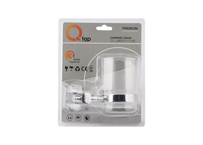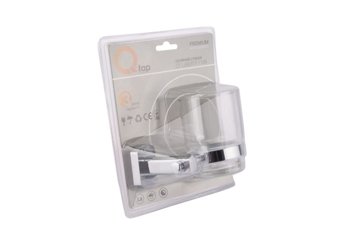 Одинарна скдянка Qtap Liberty CRM 1158 є знімною, завдяки чому догляд за нею буде простим і легким. Фурнітура склянки - прозора. У виробі використовується кільце ущільнювача (прокладка), необхідне для щільного з‘єднання металу і скла, що перешкоджає виникненню шуму в результаті зіткнення частин виробу. На тримач нанесено фірмовий логотип виробника.