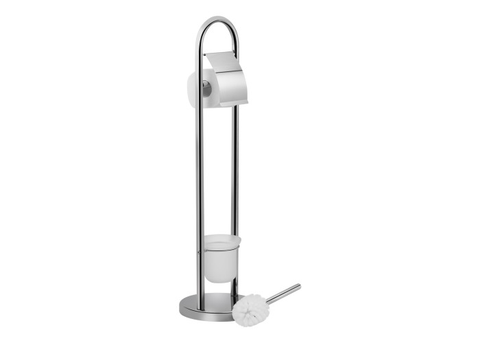 Стійка для аксесуарів Lidz (CRM) 121.05.07 дозволяє компактно з‘єднати ємність для йоржика внизу і тримач для туалетного паперу вгорі. Колба йоржика виконана з матового скла. Металева ручка міцна, не гнеться, зручна у використанні, з вбудованою кришкою, яка запобігає поширенню неприємного запаху завдяки щільному прилягання до колби. Тримач для паперу закритий, що запобігає попаданню бризок і пилу на папір. Хромоване покриття захищає від корозії.