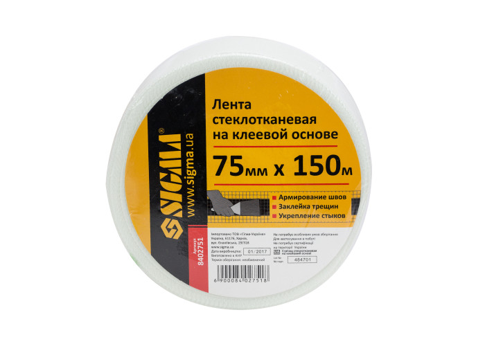 Спеціальна стрічка склотканина на клейовій основі 75ммх150м Sigma 8402741 використовується для запобігання утворення тріщин і зміцнення поверхонь. Призначена для проклейки: кутів, швів і тріщин на оштукатурених і бетонних поверхнях; стиків гіпсокартону, оргаліту, ДСП та інших листових матеріалів; місць примикання дверних і віконних коробок до стін, стель і підлог. Переваги та особливості: підвищує механічну міцність покриттів; стійка до впливу лугів, не схильна до розкладання; знімає механічні напруги; запобігає появі тріщин на оброблюваних поверхнях. Купити стрічку склотканинну Sigma Ви можете, оформивши замовлення в нашому інтернет-магазині за допомогою простої форми, доставка здійснюється по всій Україні. Якщо у Вас виникли питання, Ви можете зателефонувати за вказаними номерами телефонів або замовити зворотний дзвінок. Фахівці нашого інтернет-магазину нададуть Вам докладні консультації та допоможуть зробити правильний вибір.