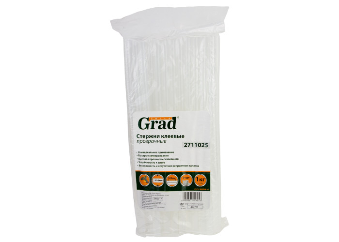 Стрижні клейові Ø11,2*300 мм 34 шт 1кг (прозорі) Grad (2711025) призначені для роботи з термоклеевим пістолетом. Використовуються для безшовного скріплення кераміки, паперу, картону, дерева, металу та інших матеріалів. Особливості: стрижні клейові є універсальними оскільки вони дозволяють склеювати будь-які матеріали. Стрижні клейові майже моментально склеюють різні елементи, так як нагрітий полімер застигає протягом декількох хвилин, після чого шов набуває практично максимальну міцність; з'єднання виходить дуже надійним, що не поступається за міцністю механічному кріпленню, розібрати його можна тільки нагріванням, причому на багатьох поверхнях не залишається слідів від клею після видалення; готовий шов добре протистоїть дії вологи; термоклей не містить токсинів і розчинників, тому він абсолютно безпечний для здоров'я. Клей не має неприємного запаху.