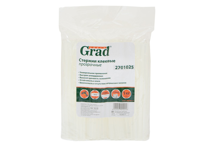 Стрижні клейові Ø8*200 мм прозорі Grad (2701025) призначені для роботи з термоклеевим пістолетом. Використовуються для безшовного скріплення кераміки, паперу, картону, дерева, металу та інших матеріалів. Особливості: стрижні клейові є універсальними оскільки вони дозволяють склеювати будь-які матеріали. Стрижні клейові майже моментально склеюють різні елементи, так як нагрітий полімер застигає протягом декількох хвилин, після чого шов набуває практично максимальну міцність; з'єднання виходить дуже надійним, що не поступається за міцністю механічному кріпленню, розібрати його можна тільки нагріванням, причому на багатьох поверхнях не залишається слідів від клею після видалення; готовий шов добре протистоїть дії вологи; термоклей не містить токсинів і розчинників, тому він абсолютно безпечний для здоров'я. Клей не має неприємного запаху.