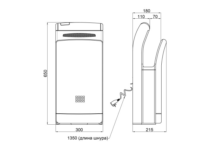 Кабель електроживлення, рейка для кріплення до стіни, сушарка для рук, кріплення.