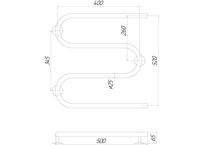 Сушарка рушників, комплект кріпильних деталей (дюбель-цвях - 4 шт.; втулка кріпильна - 4 шт.; гайка - 4 шт.; гвинт установний - 4 шт.; блюдце декоративне - 4 шт.; ключ шестигранний L2 - 1 шт.), вилка.