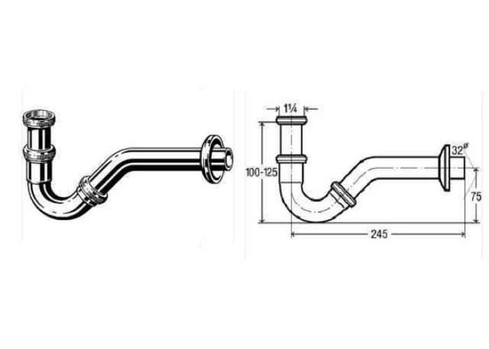 Сифон для бІде 1 1/4"х1 1/4" хром трубний VIEGA 103781