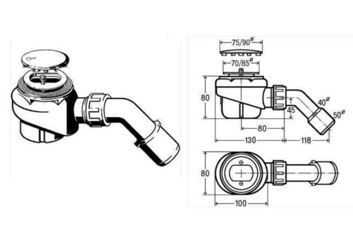 208615 Сифон пластиковий для душа ф85 з металевими гратами VIEGA