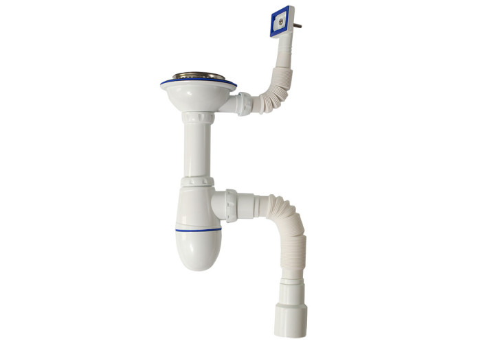 Сифон для мийки з випуском 11/2" Ø40 прямокутний з виливом та гофроз'єднанням Ø40 х Ø40/50 UNICORN В425. Важлива особливість такої моделі полягає в тому, що гумові ущільнювачі контрастного синього кольору вже інтегровані в корпус сифона завдяки використанню багатокомпонентного лиття (технологія Multi-Injection). Це значно прискорює його монтаж і мінімізує ймовірність протікань. Сифон часто наражається на небезпеку з боку механічних пошкоджень під час експлуатації. Щоб максимально мінімізувати такі ризики, в моделі реалізовано практику Increased Strength (підвищена міцність), спрямовану на виготовлення ущільнювачів з термоеластопласту, що забезпечує додаткову щільність і міцність, а також використовується високоміцний пластик, з якого зроблений корпус. Схема та інструкція з монтажу зображена на упаковці, а чашка сифона поставляється в зібраному вигляді, що полегшує і пришвидшує монтаж сифона. Гарантія – 12 років.