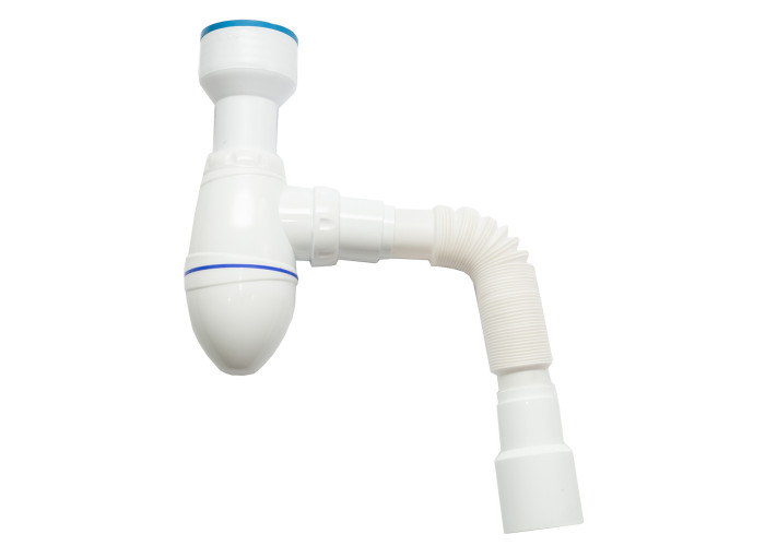 Cифон для пісуара Ø50 з гофротрубою Ø50х40/50 UNICORN K225. Важлива особливість такої моделі полягає в тому, що гумові ущільнювачі контрастного синього кольору вже інтегровані в корпус сифона завдяки використанню багатокомпонентного лиття (технологія Multi-Injection). Це значно прискорює його монтаж і мінімізує ймовірність протікань. Сифон часто наражається на небезпеку з боку механічних пошкоджень під час експлуатації. Щоб максимально мінімізувати такі ризики, в моделі реалізовано практику Increased Strength (підвищена міцність), спрямовану на виготовлення ущільнювачів з термоеластопласту, що забезпечує додаткову щільність і міцність, а також використовується високоміцний пластик, з якого зроблений корпус. Схема та інструкція з монтажу зображена на упаковці, а чашка сифона поставляється в зібраному вигляді, що полегшує і пришвидшує монтаж сифона. Гарантія – 12 років.