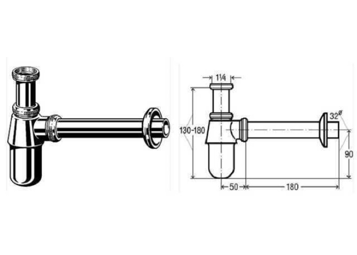 Бyтилoчний cіфoн, діaмeтp чашки 50 мм. Сифони виконані з стійкою латуні, мають глянсове хромування і відрізняються високою зливний продуктивністю.