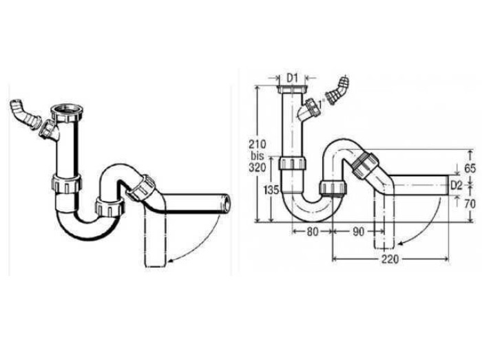 101800 Сифон VIEGA застосовується для підключення кухонних мийок, умивальників. Сифон забезпечений штуцером для підключення зливу пральної або посудомийної машини.