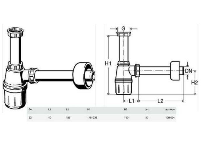 108694 Сифон VIEGA - це пляшковий каналізіцонний сифон.