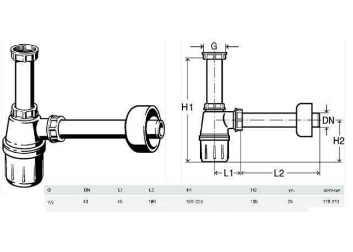 119270 Сифон VIEGA - це пляшковий каналізіцонний сифон.