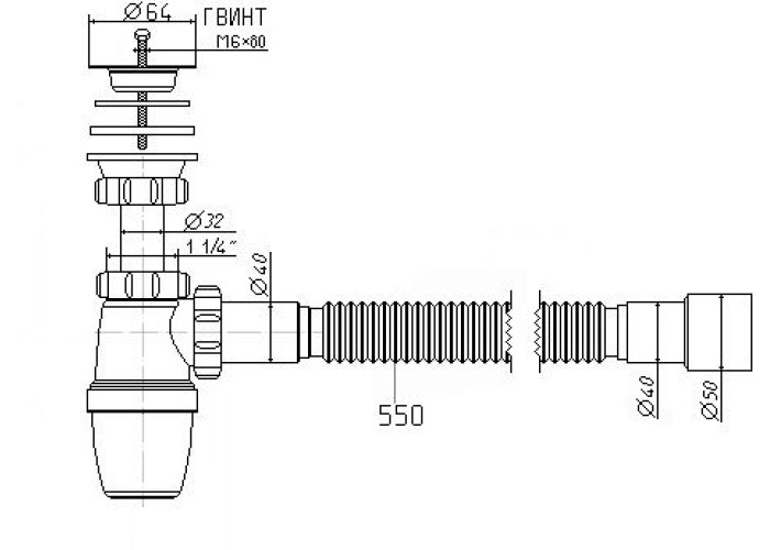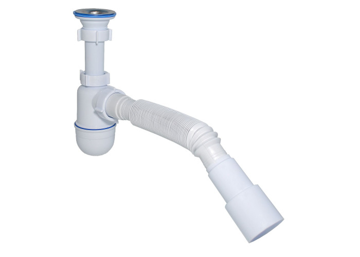 Сифон Waterstal (А - 3202) 1 1/4 40/50 з гофрою під умивальник нерж болт 8см(Розб.горловина)