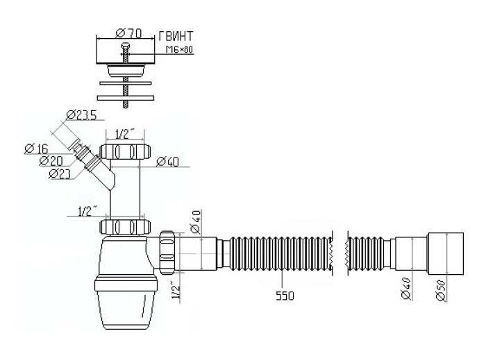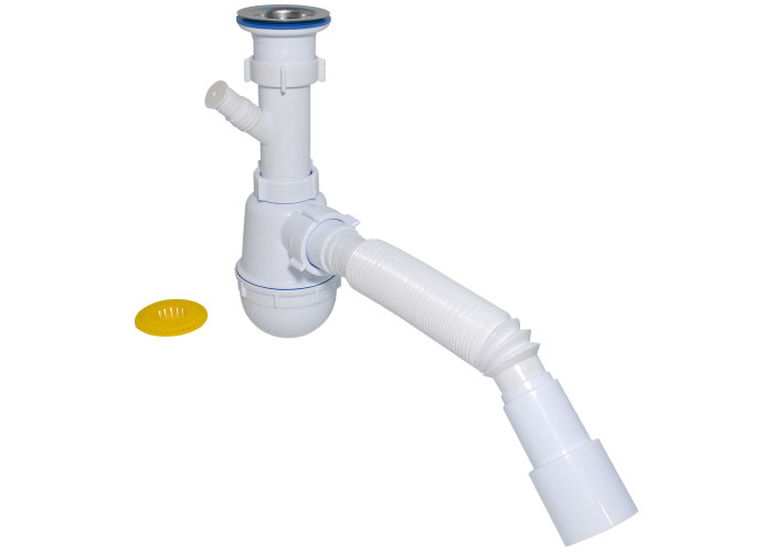 Сифон Waterstal (А - 40059) 1 1/2 40/50 для мийки з гнучкою труб. під пральну маш. нерж болт 8см