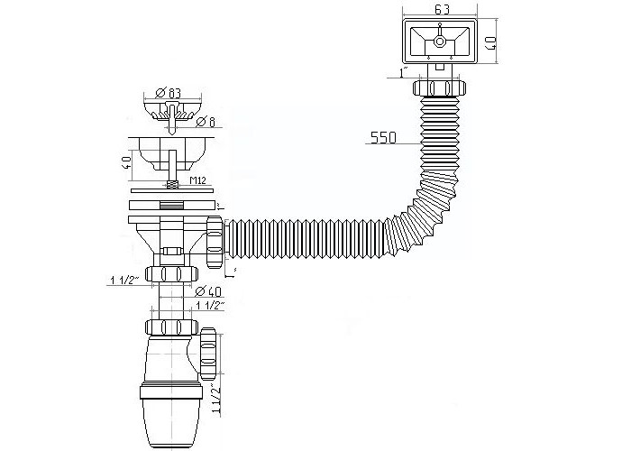 Сифон Waterstal 3 1/2 40 с переливом для гранитной мойки (А - 5007), с гибкой трубой 40*40/50