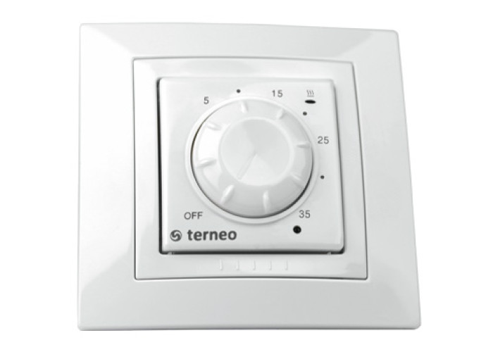 помістити терморегулятор в монтажну коробку і закрутити монтажні гвинти.