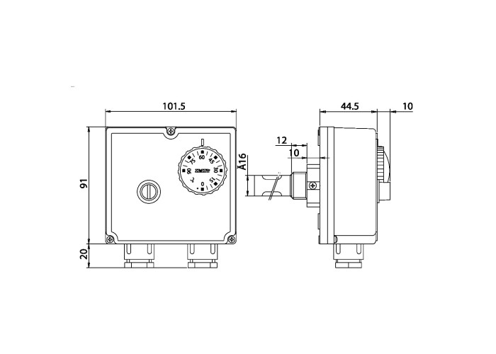 Шкала регулювання 0 / 90 ± 3; Температура спрацьовування - ?T 4 ± 1; Фазність - 1 або 3