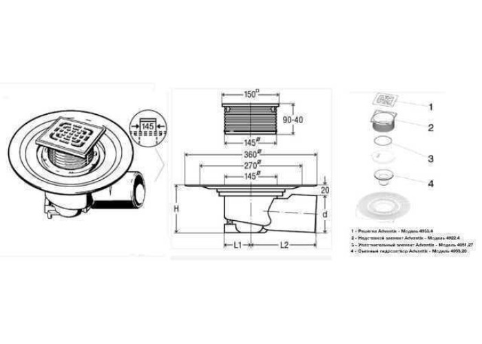 Решітка вироби VIEGA 557171 - полірована нержавіюча сталь розміром 150х150 мм., А корпус виготовлений з міцного, вискококачественного пластика який стійкий до впливу високих температур і побутової хімії. Гідрозатвор в конструкції формується водяним стовпом і запобігає проникненню запахів з каналізації. Горловина трапа регулюється по висоті і щільно прилягає до корпусу вироби на якому розташований фланець для закріплення і нанесення гідроізоляції. Конструкція даного вироби прохідна, що дає можливість підключення інших приладів і забезпечує легкий монтаж. Відведення в каналізаційну трубу стандартного діаметра - 100 мм.