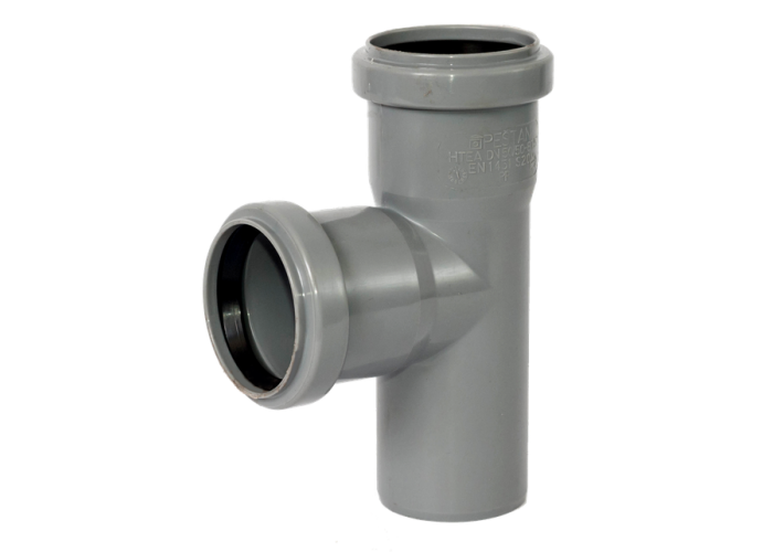 Трійник для внутрішньої каналізації Pestan. Розмір 40, кут 90. Матеріал поліпропілен. Колір сірий. Виробник Сербія.