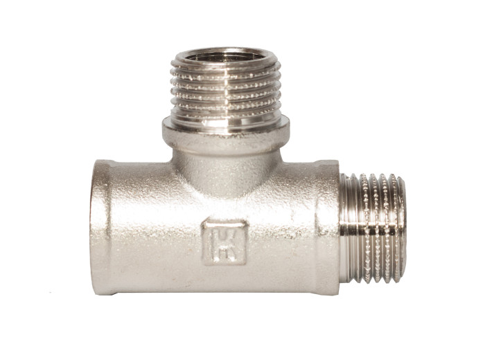 Трійник латунний різьбовий редукційний 1/2 дюйми з нікелевим покриттям, внутрішня-зовнішня-зовнішня різьба. Латунні різьбові фітинги RSk використовуються для створення роз’ємних різьбових з'єднань на трубопроводах холодного, питного, господарського та гарячого водопостачання і опалення. Особливість фітингів даного виробника – використання для їхнього виробництва високоякісної нікельованої латуні CW617N. Фітинги РСк застосовуються на трубопроводах, виконаних з різних матеріалів (сталь, мідь, латунь, поліпропілен, металополімер). Їхній великій популярності серед покупців і монтажників сприяє не тільки їхня висока якість і надійність, але і широкий асортимент запропонованих фітингів, який постійно поповнюється. Бренд RSk пропонує латунні різьбові муфти, трійники, кутники, згони, хрестовини, ніпелі, заглушки, футорки, перехідники, а також хромовані подовжувачі різних розмірів і типомоделей. Важливо, що вся продукція RSk має необхідні сертифікати та дозволи для експлуатації в Україні.